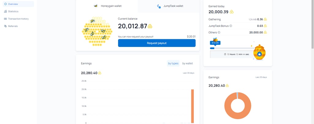 Referrals: Get 25% of whatever your friends earn, forever. The only way to make decent money with Honeygain.